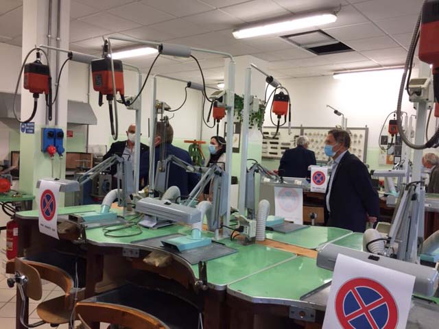 La visita ha avuto inizio dalla sala espositiva, nelle cui vetrine sono esposti gli oggetti di oreficeria realizzati dagli studenti che frequentano i corsi realizzati per gli innumerevoli concorsi del settore, che illustrano le varie tecniche realizzative insegnate nella scuola .